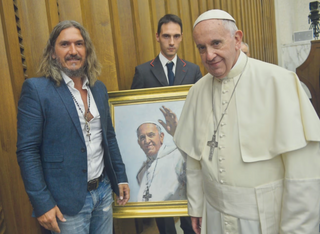 Fabian is now one of the world’s most collected artists, with celebrity admirers ranging from sporting superstars including Sugar Ray Leonard, Shaquille O’Neal and Lionel Messi, to musicians Scott Weiland, Rihanna, Shakira and Phil Campbell, comedian John Bishop, actors Micky Rourke, Mario Lopez and Megan Fox, singer song writer Juan Gabriel, President of the Latin Grammy Awards Gabriel Abora, President of the American Grammy Awards Neil Portnow; Fabian was recently a guest at the Vatican where he presented Pope Francis with his original portrait which now hangs in the Pontiff’s personal private collection.
