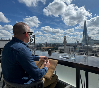 Tom Butler creates his showstopping collages using a whole range of materials; in his imaginative hands a section of a crossword puzzle may become a block of flats, a wine bottle, or a church spire, and this unique approach adds intrigue, resonance and a touch of humour to every scene.