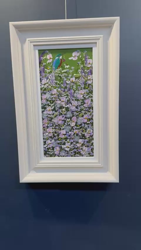 Experience the enchanting union of wildlife and botanical beauty in this original painting, where a graceful kingfisher shares the canvas with vibrant spring flowers in full bloom. The artist's skilled brushwork captures the delicate interplay between bird and blossom, creating a composition that radiates vitality and peace. This piece speaks to nature enthusiasts and art collectors alike, offering a window into moments of quiet harmony found in the natural world. A meaningful addition to your home that celebrates the interconnectedness of all living things.