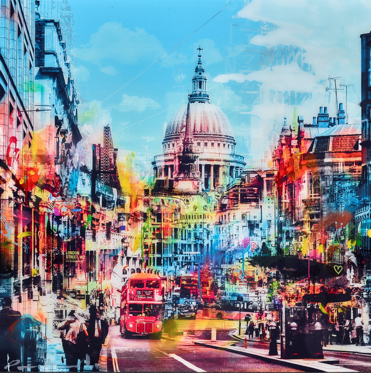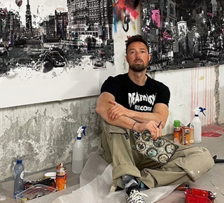 Raphael was born in 1975 and was educated at The Hague University. Growing up in this vibrant Dutch city gave him a passion for graffiti, skateboarding and hip-hop and it was this that informed his early artistic leanings and still influences him today. Over the years however, his style has evolved into a distinctive fusion of old and new. Once he has created his foundation cityscape, he introduces elements of urban industrial life in the ’50s, ’60s and ’70s, and adds images of films, music, typography and architecture all assembled from pre-existing posters. By uniting past and present in this way he creates a timeless interpretation with a strong sense of place and a unique personality.